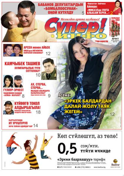 “Жакында боло турган концертиме балдар үйлөрүндөгү тарбиялануучуларды да чакырам. Аларга деп 300 чакыруу кагазын даярдап койдум” деген Асем кыз Бишкек шаарында туулуп-өскөн. Бул айым балалык кезден алыстап кетсе да, ал учурдун таттуу көз ирмемдерин төкпөй-чачпай баяндап берди. толугу менен ![]() №441 17 3