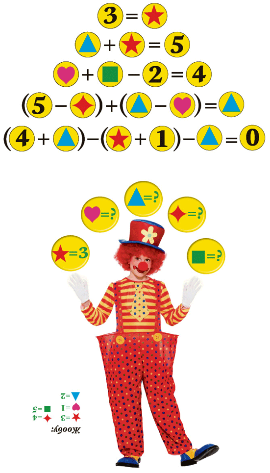 Балдар, маскарапоздун колундагы топтордогу ар бир белги бир санга дал келет. Кайсы белги кайсы санга туура келерин таап, берилген мисалдарды чыгаргыла.