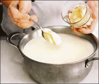 Даярдоо ыкмасы: 1. Сүткө туздан салып, аралаштырып, отко коёбуз. Сүт идиштин астына тартып кетпеши үчүн бат-бат аралаштырууну унутпаңыз. САКТОО
