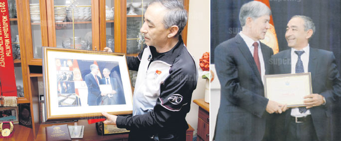 – Гарнитурда маданият жаатында болбосо да, спорт тармагындагы үзүрлүү эмгектерим үчүн ыйгарылган сыйлыктарым орун алган. Өлкө башчыбыз 2014-жылы жакшы жетишкендиктерим үчүн “Жылдын мыкты спортчусу жана башкы машыктыруучусу” сыйлыгын тапшырган.