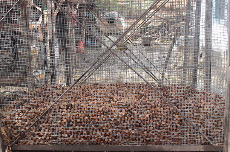 Терилген жаңгак минтип тордо кургатылат.