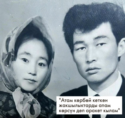-Мактанбай эле коёюн, бирок менин атамдай киши бул дүйнөдө саналуу гана. Атам чынчыл, так, сөзүнө турган, баштаган ишин аягына чыгарган, өзүн таза, тыкан алып жүргөн киши болчу. Ал устачылык менен алектенчү. Биздин үйдү атам өзү салып, эмеректерди өз колу менен жасаган. Ошол үйдү апам «атаңдын жакшы көргөн кызы элең» деп мага белек кылган. Атамдын устаканасындагы бардык аспаптар, жадакалса майда мыктарына чейин тизилип, өз ордунда турчу. Атам уста эле эмес, чыгармачыл да адам болчу, ыр жазчу. Туулган күнүбүздө бизге ыр жазып окуп берер эле. Атам каза болгондон кийин бир күнү апамдын ыйлап отурганын көрүп калдык. Көрсө, атамдын блокнотторунун биринен бир келинге арнап жазган ырын окуп калыптыр. Атам ооруканада жатканда ошол келинди жактырып калган окшойт. Таежем каткырат, «каза болуп калган күйөөңдү эмне кызганып жатасың?» деп.