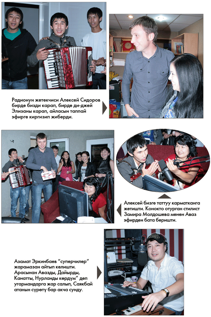 Биздин 2 күнгө созулган жарамазан айтуу жөрөлгөбүз соңуна чыкты. Биз барган сахна адамдарынын, радиоалпаруучулардын меймандос экендигине дагы бир ирет ынандык. Бурул Исмаилова "Супер-Инфо" гезитинин материалдары жеке колдонууда гана уруксат.Жалпыга таратуу "Супер-Инфо" гезитинин редакциясынын жазуу түрүндөгү уруксаты менен гана болушу мүмкүн. Рейтинг: