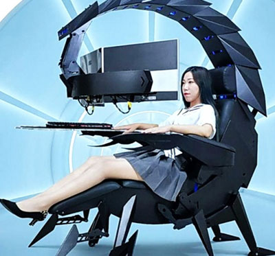 Cluvens Scorpion – бул компьютердик оюндар үчүн атайын ойлоп табылган отургуч. Ал кадимки чаяндын түзүлүшүн элестетет, анын “куйругу” мониторду адамдын бетине туштап кармап турууга ылайыкташкан. Отургучтун жөргөмүштүкүндөй буттары бар. Клавиатура үчүн тунук тирөөчү, чыканак коюла турган жери чаяндын эки кыпчууру катары жасалган. Автоматташтырылган башкаруу элементтеринин жардамы менен мониторго чейинки бурч жана аралык жөнгө салынат. Ошондой эле отургучта укалоочу жана жылытуу системи бар. Алты буттуу отургучтун салмагы 120 килограмм. Узундугу – 1,65 метр, ал эми туурасы – 1,19 метр.