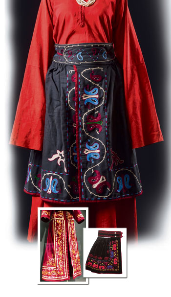 Белдемчи кыргыздын эң байыркы жана даанышман эл экендигинин далили. Анын топчусунун жоктугу топчу ойлонуп табыла элек кезде эле кыргыз аялдарынын кийип жүргөндүгүнөн маалымат берет. Белдемчинин артыкчылыктарынын бири – анда өлчөм жок. Арык жана толук аялдарга да туура келе берет жана бойду түз алып жүрүүгө жардам берет. Белдемчи – кыз турмушка чыгып, тун наристесин төрөгөндөн кийин белден ылдый тагынып баштачу кийим. Көйнөктүн сыртынан кийилет. Кыргыз эли көчмөн калк болгондуктан, атка минүүгө ыңгайлашып этек жагы кенен болуп кетет. Бели калыңдалып, узун болуп тигилет. Бирок көйнөктүн этегине чейин жетпейт, көйнөктүн этеги чыгып турушу керек. Атка мингенде тизени жаап, бутту сууктан коргойт. Белдемчини илгертеден келиндин өз апасы кызынын себине кошуп берген же жээнинин жентек тоюна барганда тигип ала барып кызынын белине тартып берген. Төрөгөндөн кийин кыймылдаганда белге күч келет. Андыктан белдемчи белди бек бууп, бат тыңыганга керек. Белдемчи деген сөз өзү “бел” деген сөздөн чыкканы баарына маалым. Андан тышкары белдемчи кош бойлуу кезде чоюлуп, чыгып калган курсакты тартууда алмаштыргыс кийим. Бели карыштай жазы болгондуктан аны кийгенде бел, ич, табарсык, бөйрөктү сууктан сактайт. Бел дайыма кысылып тургандыктан, кыргыздын келиндери кымча бел келишкен. Белдемчинин жазы бели көбүнчө кебез, жука кийиз, жүн менен ичтелген. Үйгө кийиле турганы чыттан же башка матадан тигилип, жөнөкөйүрөөк болуп, мал сааганда, тамак даярдаганда көйнөктү кир болуудан да сактаган. Белдемчи кош бойлуу аялдын курсагын жаап, ички органдарын сезгенүүдөн, бойдон түшүүдөн сактаган. Ал эми эки жакка, той-тамашага кийиле турганы кымбат матадан тигилип, өңүрүнө, этегине суусар, кундуз карматылган. Андан тышкары эки өңүрү түрдүү сайма, оюмдар менен кооздолгон. Жайкы белдемчини колунда бар айрым аялдар жибектен тиктиришкен. Айрым булактарга таянсак, белдемчини илгери эркектер да жоокердик заманда тагынган деген маалыматтар бар. Менимче, алар сыягы белдемчинин кийиз карматылып тигилген карыш келген бел бөлүгүн гана колдонушкан. Ал эркектерди жаанын огунан, кылычтын мизинен ичин, белин сактаган. Белдемчинин тигилиши жана көркөмдүгү аны кийүүчүнүн жашына ылайыкташат. Мисалы, кызыл-тазыл саймалары бар ачык өңдүү матадан тигилгени жаш келиндерге, ал эми жердиги кара, сыя-көк баркыт белдемчи жашы 45-50 жаштардагы аялзатка кийүүгө шартташкан. Илгери ар аймакта жашаган аялдарда өздөрүнө таандык оюм-чийим болуп, белдемчини алар менен кооздошкондо эл “ии, бул тигил жактык экен” деп билишкен. Белдемчи тагынуу учурда кайрадан жанданып жатканы жакшы көрүнүш. Чыптама (чермий, өпкө кап) белге чейин тигиле турган жеңи жок кийим. Бул көйнөктүн сыртынан кийилет. Денеге чыпташып тургандыктан “чыптама” аталып кеткен. Муну жай мезгилине ичин жалаң кат кылып же суукка деп ичине пахта же жүн карматып тиктирсе болот. Жаш кыздар көбүнчо кызыл түсүнөн кийишсе жашы улуулары ачык эмес түстөгү, мисалы, кара, кочкул көк түстүү матадан тиктирип кийишкен. Бул кийим да адамды сууктан, шамалдан коргойт. Чыптама кош этек көйнөк менен кийгенде көркүнө чыга түшөт. Айрымдар келбетине жараша чыптамасынын этегин кененирээк тиктиришкен. Көбүнчө чий баркыт, баркыт, тукаба өңдүүлөрдөн тигилет. Жаштар үчүн тигилгени укмуштай кооз саймаланган. Кооздоо үчүн ага «бадам», «ит куй