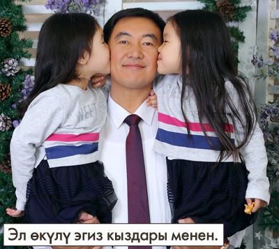 Эмил Токтошев: – Саламатчылык. Ар бир үй-бүлөдөгү ынтымакты, жубайлардын ортосундагы жылуу мамилени бекем сактап турган – бул наристе. Бардык эле жубайлардын негизги максаты балалуу болуу, артына туяк калтыруу болсо керек. Биз да көп балалуу болууну кыялданып баш кошконбуз. Кудайга шүгүр, 20 жылдан бери түтүн булатып келе жатабыз, ортодо 5 балабыз бар. 3 кыз, 2 уулубузга татыктуу тарбия берип бактылуу ата-энелердин катарын толуктап жүрөбүз. Азыр балдарыбыздын баары мектепте окуп жатышат. Рысгүл Акимжанова: – Мен таята-таенемдин колунда чоңойдум. Ата-энем мугалимдер, кайын ата, кайын энем да мугалим болушкан. Кайын журтум да, ата-энем да балдарын жакшы тарбиялашкан. Биз өзөгүбүздөн эмнени алсак, ошону гана балдарыбызга бере алабыз. Ошолордун уңгусун алып балдарыбызды тарбиялап келе жатабыз. Акыркы учурларда балдарды агрессия менен тарбиялоо көндүм адат болуп баратат. Агрессивдүү ата-энелер өздөрү бала кезде жетиштүү мээрим көрбөй чоңоюшса керек. Анткени көр тириликтин айынан көптөгөн ата-энелер миграцияга кетүүгө аргасыз болушту. Баланын калыптануусундагы баштапкы пайдубалын ата-эне түзөт, эгер пайдубалда бир нерсе жетишпей, балада өксүк калса, ал бала агрессивдүү чоңоёт. Андыктан балабыз сабакты жакшы окуйбу, жаманбы, болушунча мээрим төгүшүбүз керек. Мээримге тойгон, сугарылган баладан гана мыктылар чыгат. Э.Т.: – Экөөбүз тең Алайкуу өрөөнүнүн Күйөө-Таш айылынан болобуз. Ортодогу жаш айырмабыз 5 жыл болгону менен, бири-бирибизди таанып, көрүп эле чоңойдук. Бирин-серин сезимдер айылда жүргөндө эле бар эле. Кийин экөөбүз эки жакта жогорку окуу жайды бүттүк. Ошондо Рысгүлдү издеп таап, баш кошуу сунушун киргизгем. Жүрөгүн багындыруу оңой болгон жок, ал кезде мындай татынакай кыздардын артынан чуркаган жигиттердин саны да аз эмес болчу. Рысгүлдү курбулары менен жолугушууга чакырып жүрүп көңүлүн тапкам. Артынан чуркаган жигиттердин эң татыктуусу аягында мен болдум окшойт. Р.А.: – Канча жигит артымдан чуркап жүргөнүн санабай калыптырмын (күлүп). Эми бойдок кезде ар бир эле бойго жеткен кызга жигиттердин көзү түшсө керек. Ата-энеме ыраазы болгонум – биздин тандообузду өз колубузга берди. Мен ошол тандоону туура пайдаландым деп ойлойм. Р.А.: – Негизи депутаттын аялы деген сөз мага жакпайт. Биз Эмил экөөбүз 20 жыл мурун колубузда эч нерсебиз жок кезде баш кошконбуз. Үй-бүлөлүк бизнести чогуу түптөдүк. Бизнести эл нөлдөн баштаса, биз карызга акча алып минустан баштаганбыз. Турмуштун көп кыйынчылыгын чогуу басып өттүк. Кандай учур болбосун чыдап жашайсың, “менин күйөөм депутат болушу керек, сен кароолчусуң” деп кетип калбайсың да туурабы? Эмил депутаттан мурун менин жолдошум, ал эми аткарган кызматы, анын макамы кийинки планда. Адамдар кайсы бир нерсени таңуулап “бул тигинин баласы, мунун күйөөсү” дегендин ордуна, ошол адамдын инсандык табиятын ачып көрө турган болсо коомдун жетишкендиги болмок. Көпчүлүк мени депутаттын аялы эмес, жеке инсан катары таанышын каалап жүрөм. Э.Т.: – Рысгүлдүн жакшы сапаты – абдан чыдамкайлыгы. Турмушта көп оор күндөр өттү, 5-6 жылдап батирлеп жашап жүрдүк. Өзүңүздөр билгендей, кичинекей балдар менен батирлеп жашоо өзүнчө бир түйшүк. Көпчүлүк үй-бүлөлөр турмуштун оордугуна чыдабай ажырашып кетип жатышпайбы, ортодо бекем сүйүү болсо да ажырашып кеткендер бар. Оор кырдаалдарда ата-энесинен алган та