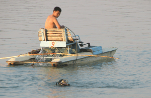 БАЛЫРЛАРЫ, ДИСКОТЕКАСЫ АРАЛАШ Алгачкы багытыбыз Бишкектин ичинде эле жайгашкан “Аэропорт” көлмөсүн көздөй болду. Тынчтык проспектиси менен тоону көздөй жүрүп, курулуп бүтпөй токтоп калган мейманкананын тушуна келдик. Биз эңсеп келген көлмө ушул тушта. Бул жерге каалагандар 298инчи жана 266ынчы маршруттук таксилерге түшүп же Ахунбаев көчөсү тарабынан жөө деле келе берсе болчудай. “Аэропорт” көлмөсүнө кирүү 20 сомдон экен. Айланасына 2 метрдей аралыкка кум чачылып, пляж жасалган көлмөнүн суусу тимеле укмуш... Жапжашыл боло суунун бетин бербеген балырлары, ылайы аралаша жүздөн ашык адамдар сүзүп жүрүшөт. Мынчалык кир сууга ысык болбогондо айдасаң да түшүшпөсө керек эле. Көлмөнү тегерене басып, администрациядан кимдер бар экенин сураштырдык. “Бул жайды биз ижарага алып иштетип жатабыз”,- деп түшүндүрдү өзүн Мухамедали деп тааныштырган жашы отуздар чамасындагы кыргыз жигит. “СЕН ДА СУУГА ТҮШПӨГҮН, ООРУП КАЛАСЫҢ!” Саякатыбыздын экинчи бөлүгүн шаардын ичинен орун алган “Сорока” көлмөсүнөн уланттык. Жаш Гвардия бульвары менен Ленинград көчөлөрүнүн кесилишиндеги бактын арасынан орун алган бул көлмөгө келгендердин саны өтө арбын. “Аэропорт” көлүндө суунун түрүн көрүп чочуганыбыз жөн эле кеп экен. Айлана-тегереги коргондолуп тосулбаган бул жайга адамдар түгүл ысуулаган ити, мышыгы деле келе берет тура. Суусу киргилдене көбүктөнгөн көл ичиндеги ичимдик, суусундуктардын бөтөлкөсү, “одноразовый” аталган стакандар, жыл бою боюна топтолгон ылай, жалбырак, чырпыгы аралаш акыр-чикир... Түз эле куткаруучунун кийимин кийип отурган 2 кишини көздөй бет алдык. “БИЗДИН БАЛДАР КУТКАРУУЧУ БОЛУУГА АРГАСЫЗ БОЛУШУУДА” Шаар ичинен ысыган жанды сергитээр, суусу тазараак көлмө таппай эми шаардын четине Аларча суу сактагычын көздөй жөнөдүк. Атайын мэрия тарабынан эл сууга түшүп эс алуучу жай деп эсептелинбесе да, ысыктан качкан шаардыктар бул суу сактагычка көп келишээринен кабарыбыз бар эле. “Дордой” базарынан ары шаарды айланган (объездной) жолдон 8 чакырым алыстыктагы бул суу сактагыч шаар ичиндеги көлмөлөрдөн 5-6 эсе чоңдугу менен эле айырмаланбастан, суусунун тазалыгы, жээгинин шагыраган таштактыгы менен да айырмаланат экен. Бул суу сактагыч спорт мектебинин окуучулары кайык менен сууда сүзүүнү үйрөнүшсүн үчүн атайын колдонууга берилген экен. Азыр спортчуларга да ээ кылбай, аптаптан качкан эл ызы-чуу түшө сууда жүрүшөт. “КОЛУМДАН ЖЫЛМЫШЫП, СУУГА ЧӨГҮП КЕТТИ” Башкалардан таза, салкын бул сууга бир сыйра чайынып сергип алган соң ошол эле айланма жолго түшүп “ГЭС-5ти” көздөй жөнөдүк. Билишибизче, эл көп келген көлмө ушул. Бул жайга кирүү үчүн машинага 35 сом, киши башына 20 сомдон, катамаранга саатына 50 сомдон төлөйт экенсиң. Кире бериште жол тоскон күзөтчүлөрдөн өткөн соң калың бакка бөлөнгөн жол менен көлмөнү көздөй жөнөдүк. Сууга жетээрде биринчи эле көзүмө түшкөнү “161” сактап калуу кызматынын машинасы болду. Оюмда “бул көлмөнү ижарага алып иштетип жаткандар “161” сактап калуу кызматы менен келишимди мыктылап түзүшкөн тура” дептирмин. Көрсө, алар жаш жигит чөгүп кеткенинен улам көлмөдөн куткаруучулар табылбай, чакырык менен келишкен водолаздар экен. Эми эле чогуу ойноп жүрүшкөн шеригин суудан таппай калып, өң-алеттен кеткен 2 жигит узаткан суроолорубузга жооп берүүгө да жарашкан жок. Көрсө, медакадемиянын 2-курсун бүтүрүш