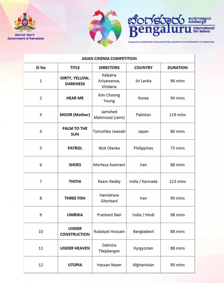 Бангалордо боло турган 8-Эл аралык кинофестивалдын Азия тасмаларынын программасына кыргыз кинорежиссёру, сценарист Дальмира Тилепбергенованын "Асман алдында" аттуу тасмасы да катышат. Сынакта аталган тасма Азиянын 11 өлкөсүнүн тасмалары менен бирге ат салышат. Бул тууралуу "Айтыш фильм" киностудиясынын басма сөз кызматы билдирди.