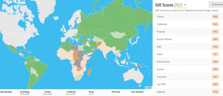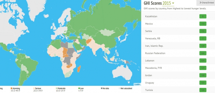 Дүйнөдөгү ачкачылык боюнча изилдөөнүн жыйынтыгында Борбор Азияда Тажикстан 30,3 пайыз тамак жетишсиздиги менен эң жакыр өлкө деп табылды. Бул көрсөткүчтү калктын чала тойгон бөлүгүнүн, 5 жашка чейинки балдардын аң-сезиминин жетилбегендигинин, ошондой эле 5 жашка чейин каза болгон балдардын санынын негизинде Эл аралык азык-түлүк саясатын изилдөө институту түзгөн.
