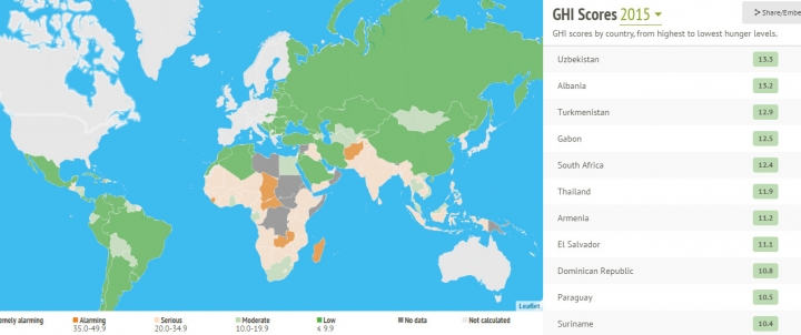 Дүйнө боюнча эң жакыр өлкө деп 46,9 пайыз тамак жетишсиздиги менен Түштүк Африка Республикасын аташты.