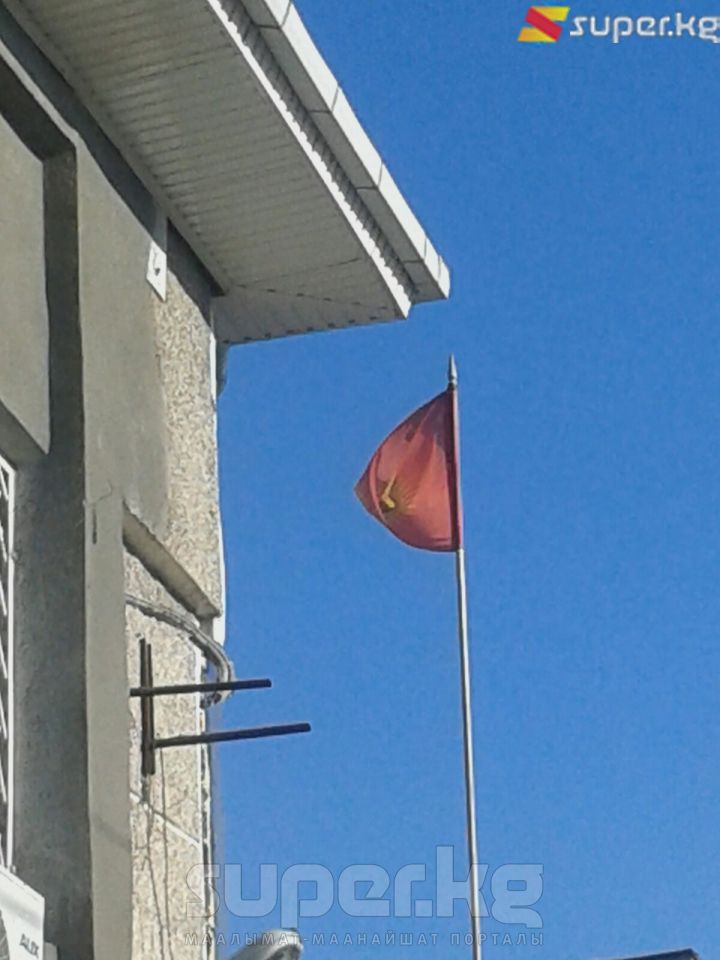 ЭЛДИК КАБАР: Оштогу Улуттук банктын имаратында мамлекеттик туу жарымы жок бойдон илинип турат