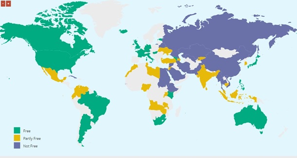 Мекеменин билдиргени боюнча, дүйнө жүзүндө эркиндик көрсөткүчү төмөндөдү. Буга Жакынкы Чыгыштагы жаңжал себеп болуп жатканы белгиленген.
