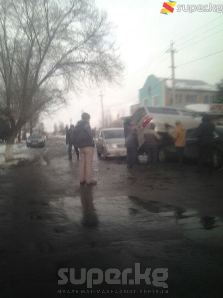 "Ысык-Көл облусундагы Каракол шаарынын Абдрахманов көчөсүндө саат 16:00 чамасында үч унаанын катышуусунда жол кырсыгы болду. Бактыга жараша, кырсыктан жаракат алгандар да, көз жумгандар да болгон жок",- дейт окурман.