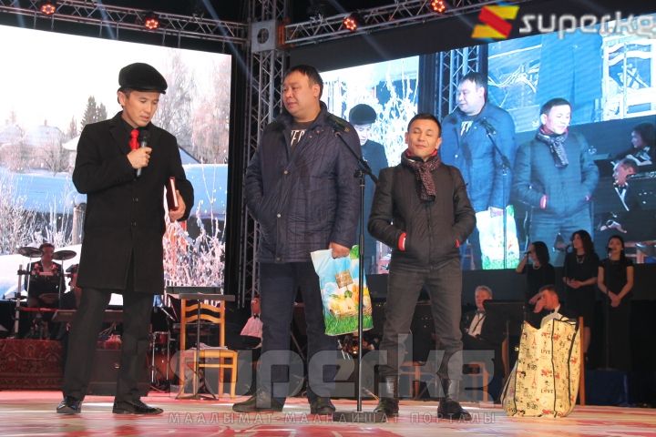 Тамашакөй жигиттер Болсунбек Стакеев, Талас Кашкариев жана Баатырбек Абакиров жашоодогу күлкүлүү окуяларды көрсөтүшүп, иш-чаранын башынан аягына чейин конокторго жакшы маанай тартуулашты. Ал эми алып баруучулукту Союзбек Сейитказиев аркалап, ал да мыкты тамашалары менен концертке келгендерди күлдүрүп жатты.