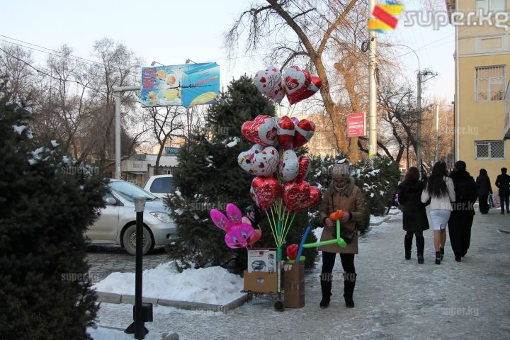 Бүгүн бул майрам өлкөбүздүн борбор калаасы Бишкекте да белгиленип жатат. Майрамдагандардын басымдуу бөлүгү жаштар. Алар үчүн ар кандай иш-чаралар, концерттер, сынактар, оюндар уюштурулду. Бишкектин кээ бир соодагерлери соода бүгүн жакшы жүргөнүн айтышса, айрымдары соода болбой жатканын билдиришти. Алардын айтымында, жаштар көбүнчө жүрөкчө открыткаларды, жумшак оюнчуктарды алышты.