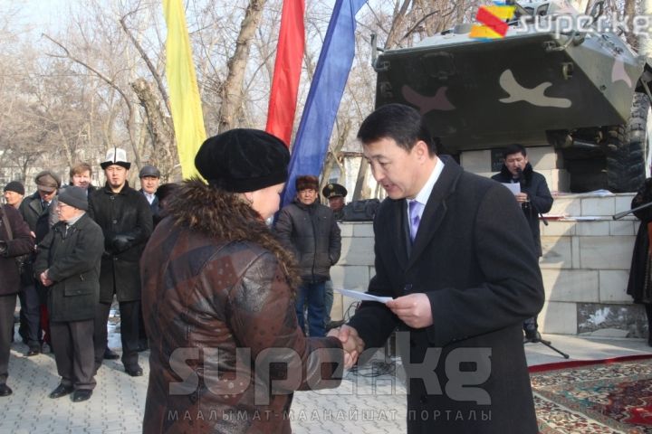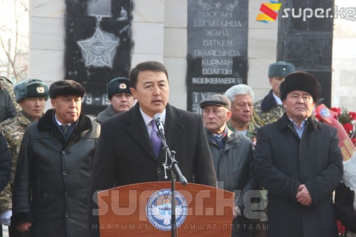 “Бүгүнкү күндө Ош шаарында 422 интернационалист жоокер жашайт. Алардын ичинен төртөөнүн ден соолугунун мүмкүнчүлүгү чектелген. Ооган согушунан кайтпай калгандардын үй-бүлөлөрүнө, катышуучуларына мамлекет, мэрия тарабынан колдоо көрсөтүлүп келет, бирок булардын кайгысын, муңун эч нерсе менен толтура албайсың. Ошондой болсо да бул үй-бүлөлөр өздөрүнүн кайтпай калган эр-азаматтары менен сыймыктанышса болот, себеби алар кан майданда Ата Мекендин буйругун аткарып жатып баатырларча курман болушту”,- деди Аскаров.