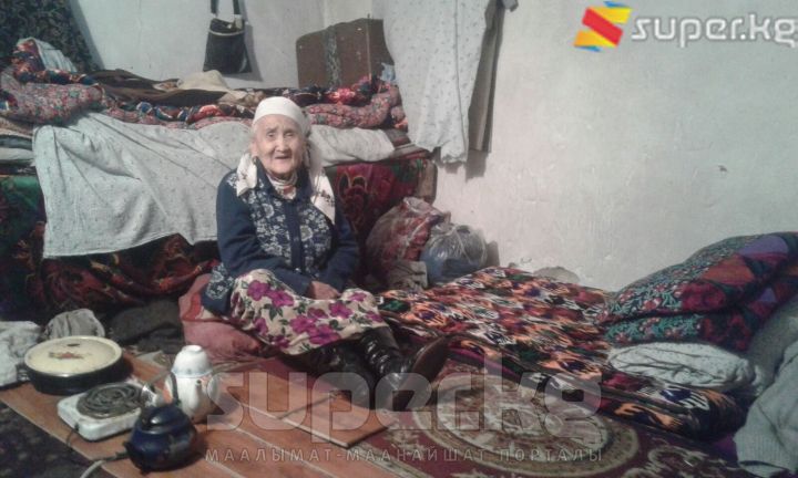"90 жаштагы Зейнеп Абдыкарова 10 жылдан бери гаражда жашайт. Колунда 1 уул, 1 небереси бар. Уулу сарык менен ооругандыктан, оор ишке жарабайт. Небереси жайында иштебесе, кышында эненин пенсиясы менен күн кечирет. Өзүнүн 4 уул, 4 кызы бар эле, бирок 4 баласы каза болгон. Энеге ким жардам бере алат?"- деп суроо салды окурман.