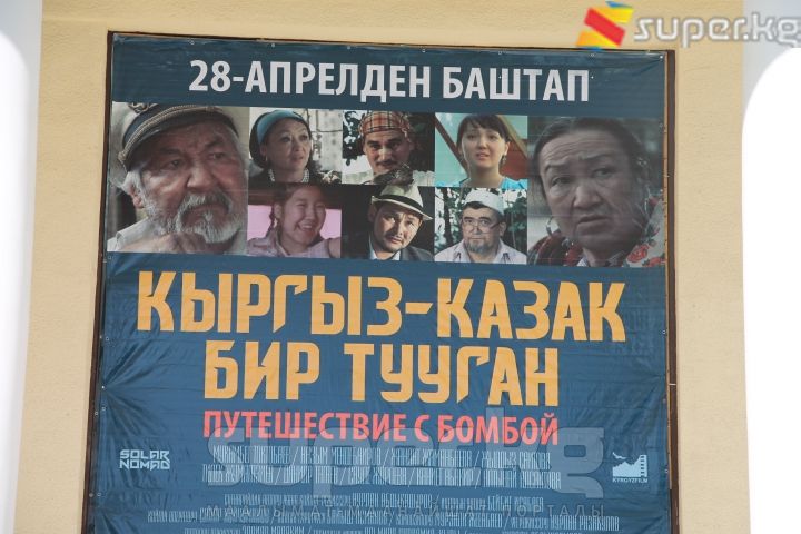 Бүгүн, 27-апрелде "Манас" кинотеатрында "Кыргыз-казак бир тууган. Путешествие с бомбой" комедиялык тасмасы жабык эшик артында көрсөтүлдү. Ага тасманын жаратуучулары, чакырылган коноктор, шаар тургундары жана башкалар катышышты.