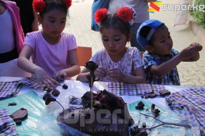 "Кыргызстан балдары" шаардык мектеп окуучуларынын чыгармачылык борборунун жетекчиси Бактыгүл Кемелгазиеванын айтымында, майрамда каалаган бала жаккан аянтчасына келип, чыгармачылык өнөрүн көрсөтө алат. "Мындай ыкма балдардын аң-сезимин өстүрүп, ар бир эмгегинде өзүнө болгон ишеним пайда болот", - дейт Б.Кемелгазиева.