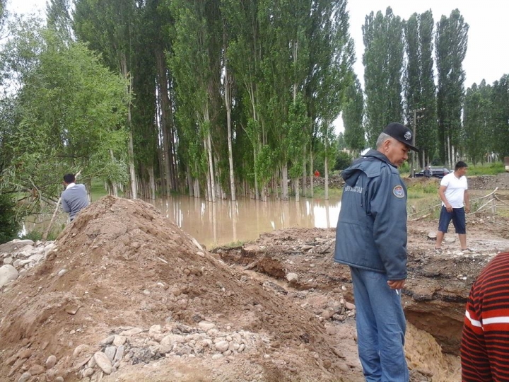 Талас облусунда кооптуу болгон суу жээктерин бекемдөө иштери улантылууда. Өзгөчө кырдаалдар министрлигинин маалыматына ылайык, 16-июнда Талас дарыясынын деңгээли көтөрүлүп, сууга жакын жайгашкан турак жайлардын короолорун жана жер төлөлөрүн суу каптаган. Көпүрөлөрдү алып кетүү коркунучу жаралган. Кырсыктын алдын алып, жээктерди бекемдөөгө кубаттуу техникалар тартылган. Ага кошумча Жарандык коргонуу комиссиясы тарабынан жалпы 220 адам иш жүргүзүүдө.