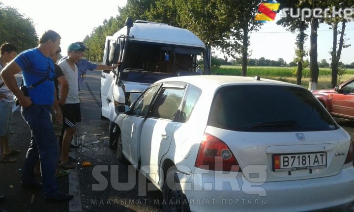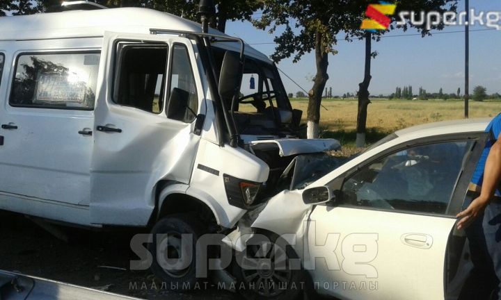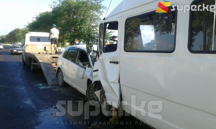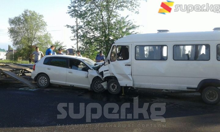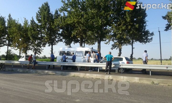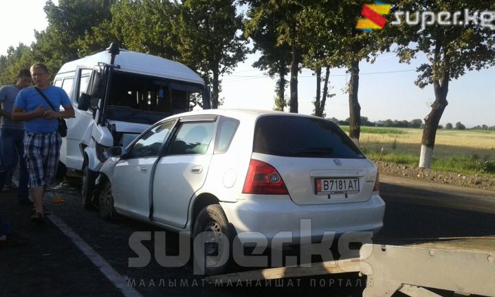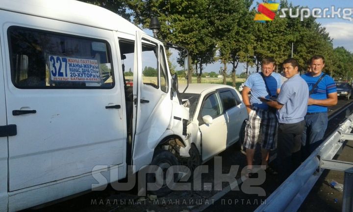 Бишкек-"Манас" аэропорту жолунда кичи автобус менен жеңил унаа сүзүшүп, 10 адам жабыркады. Кырсык бүгүн, 19-июнда саат 18:30 чамасында болду. Эки унаанын айдоочулары жана 8 жүргүнчү жабыркап, баары ооруканага жеткирилди. Арасында оор абалдагылары да бар. Хонда үлгүсүндөгү жеңил унаа каршылаш тилкеге чыгып кырсыкка себепкер болгон.