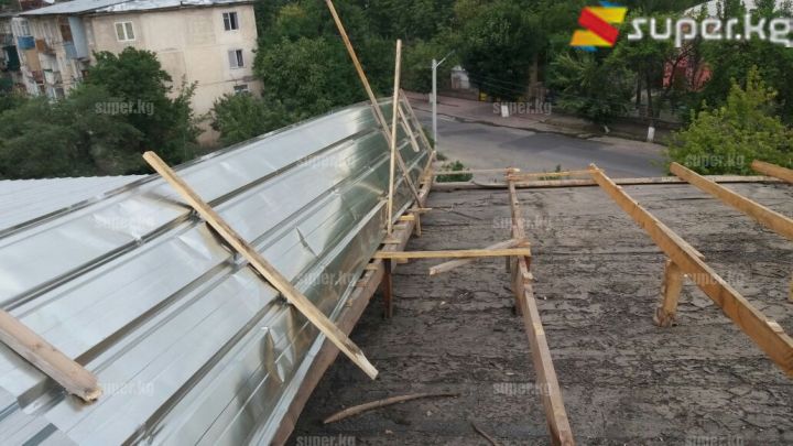 ЭЛДИК КАБАР: Ошто көп кабаттуу үйдүн чатырын шамал учуруп кетти (фото)