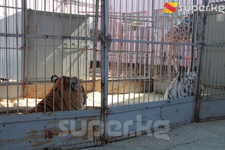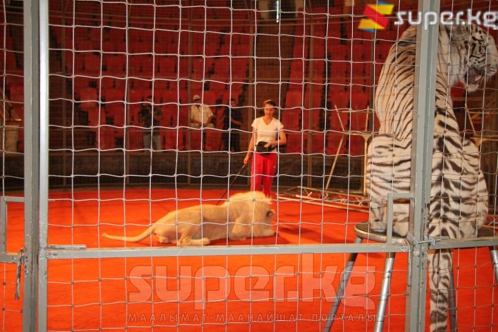 Орусиядан Кыргыз жерине "Африканын алптары" аталышындагы көрсөтүү менен цирк өнөрпоздору келишкен. 3 тонналык Бонни аттуу керик, Багир аттуу акыра, чанда кездешүүчү ак арстан, ак, сары бенгал жолборстору, гамадрил маймылдары биздин өлкөгө алгачкы ирет келип жатышат. Бүгүн, 3-августта Абубакир Изибаев атындагы Кыргыз мамлекеттик циркине барып, жаныбарлардын сахнага чыгууга даярданып жаткан учурун көрүп келдик.
