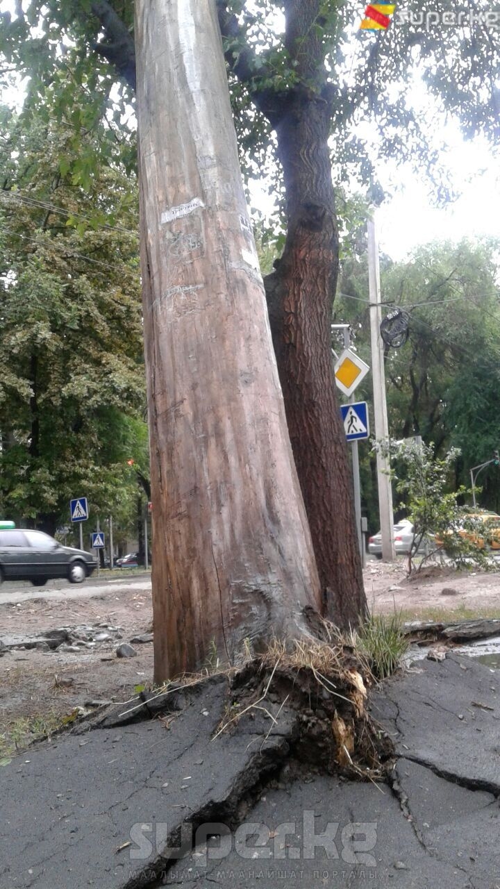 Мэрия. Эки унааны басып калган жаш дарак сууну көп ичкенден улам кулаган