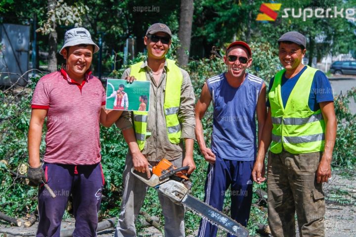 "Учурда бул мекемелердин кызматкерлери күндөгүдөй бак-дарактарды кыркып, авариялык абалдагы бактарды кыйып, Кыргыз Республикасынын эгемендүүлүгүн 25 жылдыгына даярданышууда. Кыргыз спортчуларына Олимпиадада ийгилик каалайбыз", - деп айтылат мэриянын маалыматында.