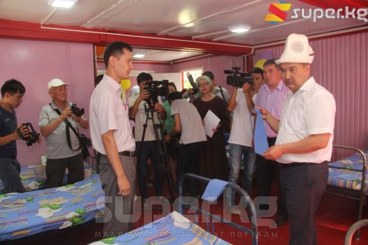 “Кандайдыр бир себептер менен лагерде Ош шаарынын жарандары 2010-жылдын Июнь айынан тарта жашап келе жатышкан. Түшүндүрүү иштерин жүргүзүп, башка жакка көчүрүлгөндөн кийин балдардын эс алуусуна кам көрө баштадык. Быйыл аз камсыз болгон үй-бүлөлөрдүн балдары, кароосуз калган балдардан 25 бала жаңы окуу жылына жакын бир жума эс алат. Учурда шарттарды көрүп чыктык. Ал эми кийинки жылдан тарта реконструкция иштерин жүргүзгөн соң, 220 баланын бир жумада эс алып кетүүсүнө мүмкүнчүлүк түзүлөт. Ошондо жайкы эс алуу учурунда 2 миңге чукул бала лагерде эс алат”, - деди А.Кадырбаев.