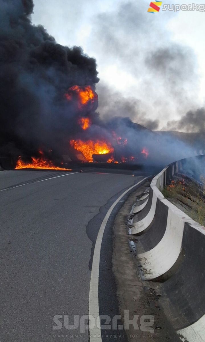 "Бүгүн саат 15:20да Ош-Баткен-Исфана жолунун 258-чакырымында бензин ташуучу унаа күйүп жатканы тууралуу маалымат түшкөн. Өрттү өчүрүүгө 26-атайын өрт коопсуздук бөлүмүнүн 1 бөлүмү тартылган. Кызматкерлер ал унааны өчүрүү иштерин бүтүрүп, учурда жайылып кеткен өрттү өчүрүшүүдө", - деди катчы.