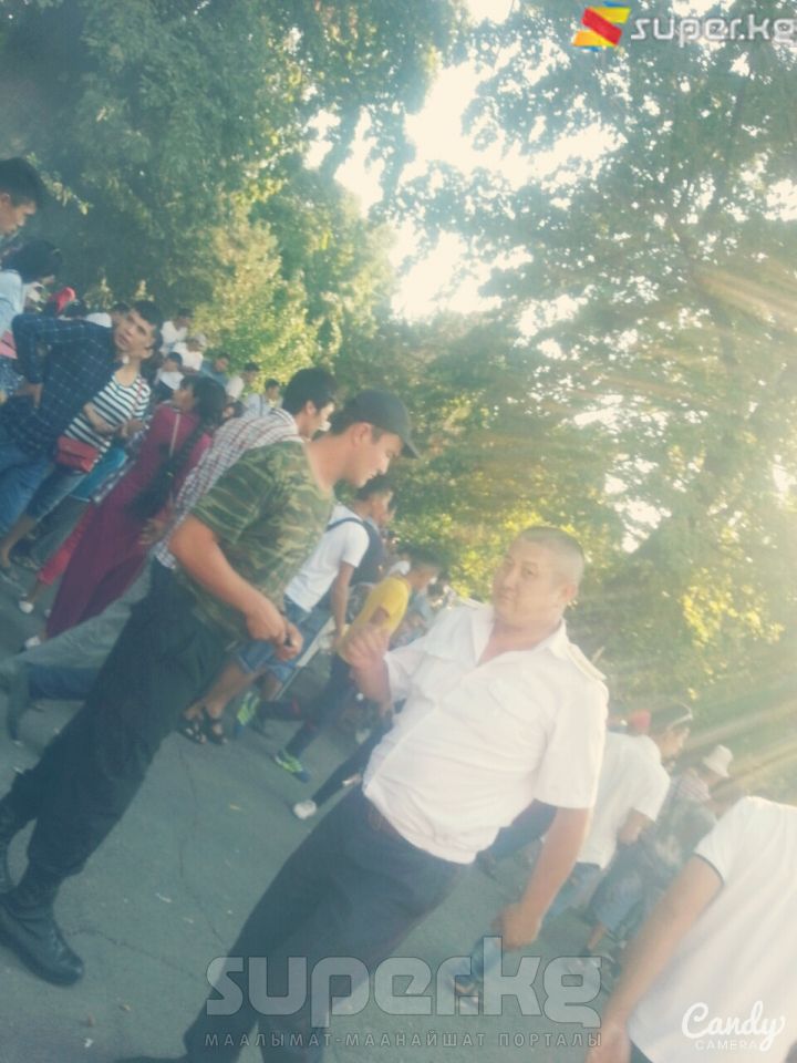 "Эмнеден улам сабап жатышканын билбейбиз. Майрамдап жүргөн эл ызы-чуу болуп, милиция кызматкерлерине "балага тийбегиле" дешсе да укпай жатышат. Ал бала качканга да аракет кылды, жерге жаткырып алып уруп жатышат", - дейт окурман.