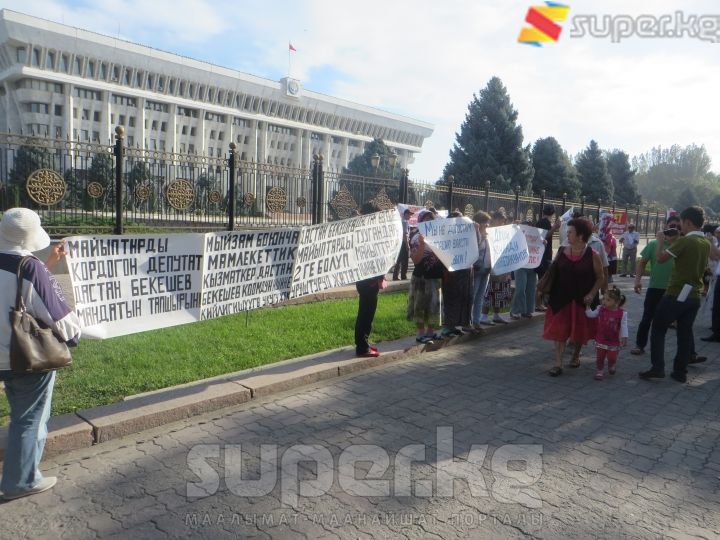 Бүгүн, 1-сентябрда Бишкекте Ак үйдүн алдында эки митинг өтүүдө. Биринчи топ - ден соолугунун мүмкүнчүлүгү чектелген адамдар. Алар Жогорку Кеңештин депутаты Дастан Бекешевден мандатын тапшырууну талап кылышууда. Бул топ "Мыйзам боюнча, мамлекеттик кызматкер Дастан Бекешев коомдун ишине кийлигишүүгө укугу жок", "Дастан Бекешев майыптарды экиге бөлүп уруштуруп жатат", "Майыптарды кордогон Дастан Бекешев мандатын тапшырсын!" деген жазуулары бар плакаттарды кармап турат.