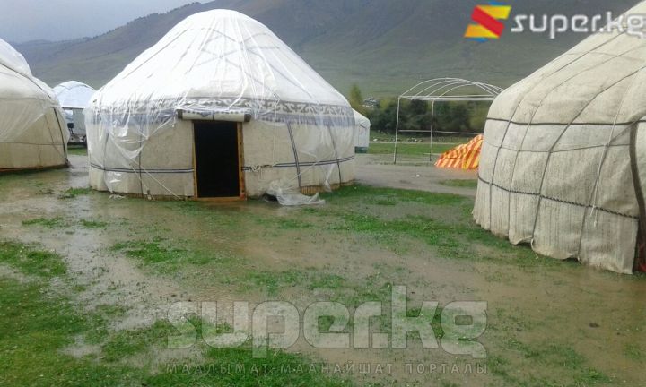 Дүйнөлүк көчмөндөр оюндары өткөрүлүүчү Кырчын жайлоосунда катуу жааган жаандын кесепетинен 20 боз үйдү суу каптады. Бул тууралуу бүгүн, 2-сентябрда Өзгөчө кырдаалдар министрлигинен билдиришти.