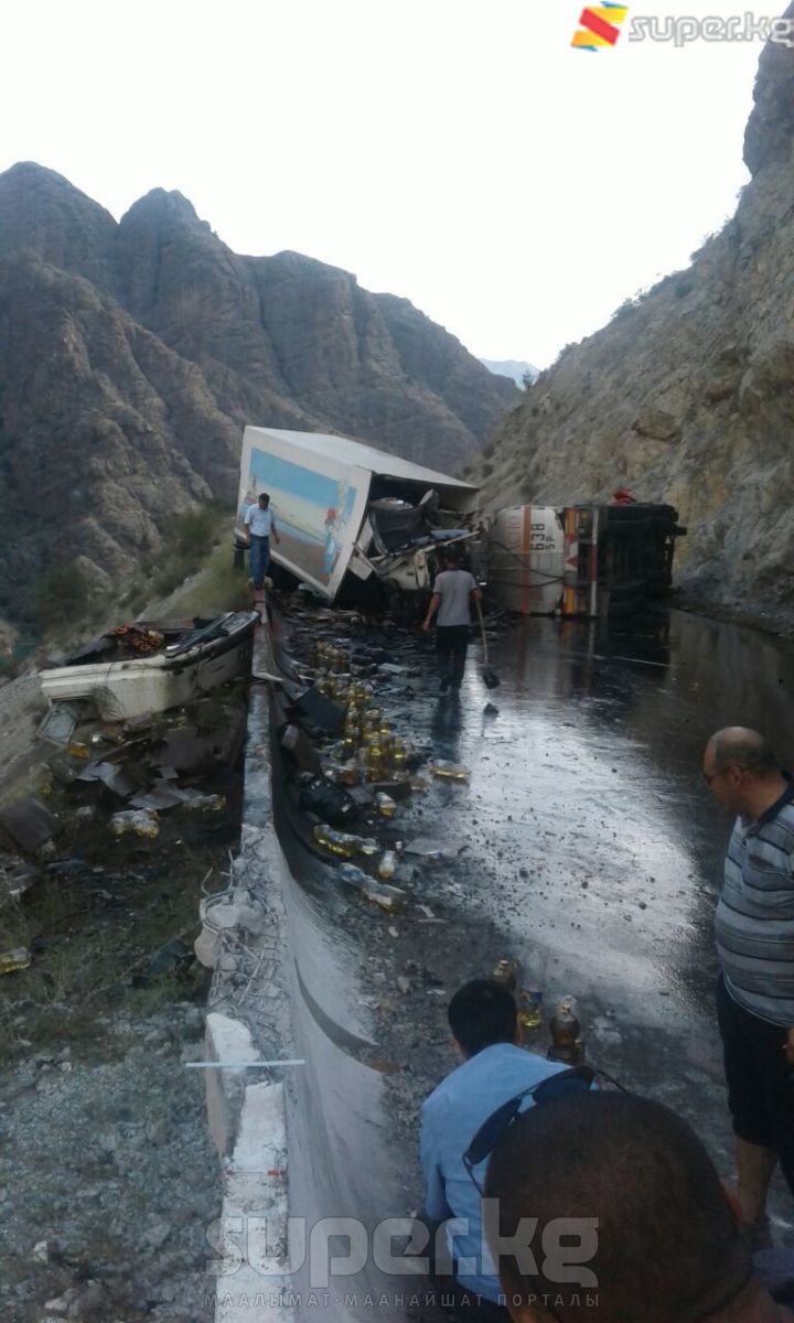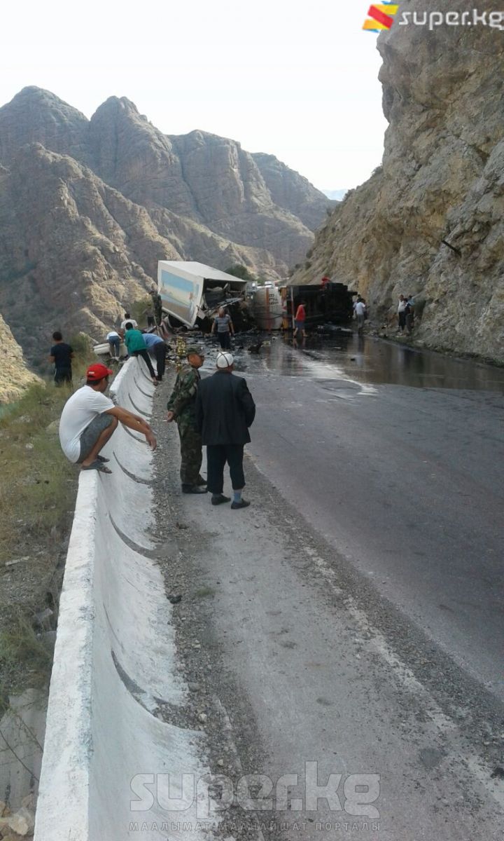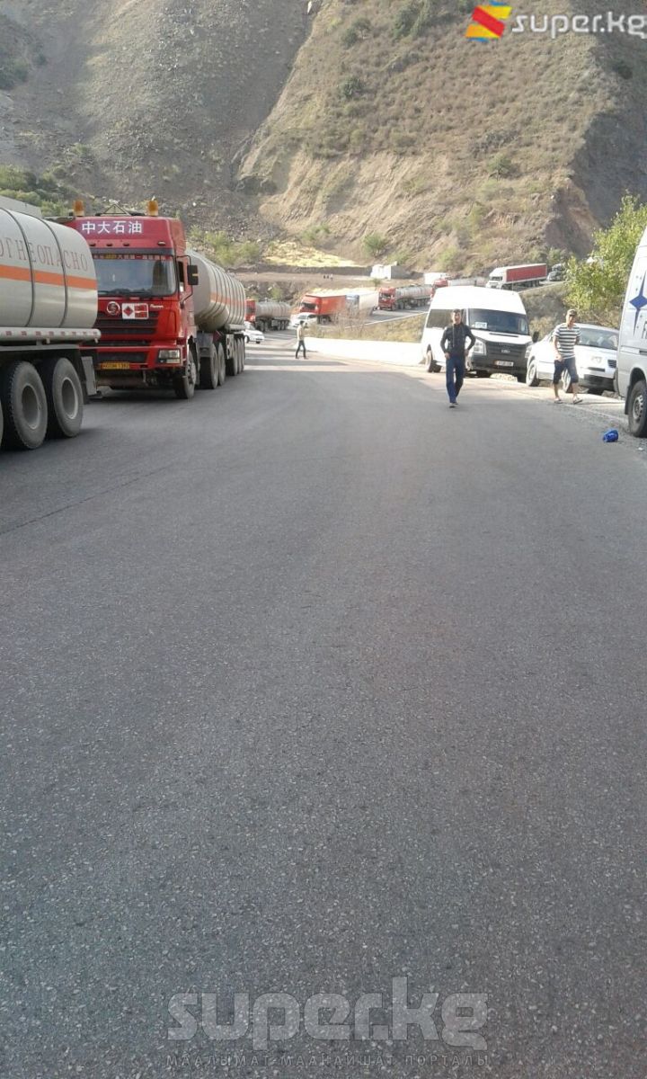 “Эки оор жүк ташуучу унаа сүзүшүп, экөө тең оодарылып калган. Анын кесепетинен унаа жолу жабылып, бир нече чакырымга созулган унаа тыгыны пайда болду”, - дейт окурман.