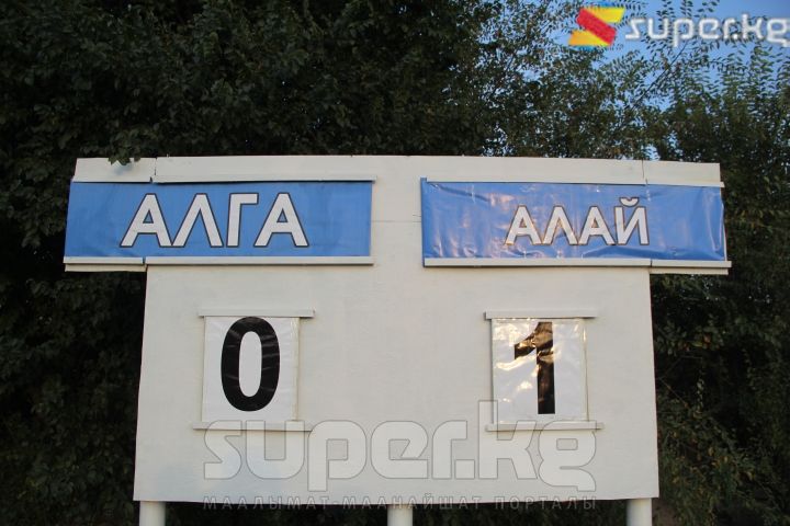 "Алга"-"Алай" беттеши үй ээлеринин атаандаштын талаасындагы кысымы астында башталды. Алгачкы 45 мүнөттүктө эки командада тең эсепти ачканга мүмкүнчүлүк болгон, бирок топту дарбаза торуна чейин эч ким жеткире алган жок. 2-таймда учурдагы өлкө чемпиону "Алай" демилгени колго алып, 84-мүнөттө жеңиш голу жаралды. Голдун автору - Течи Саламон.
