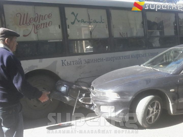 “Жол кырсыгы бүгүн саат 13:35 чамасында болду. Анда жүргүнчүлөрдү түшүрүп жаткан автобусту жеңил унаа келип сүзүп алган. Бактыга жараша, жол кырсыгынан эч ким жабыркаган жок”, - дейт окурман.