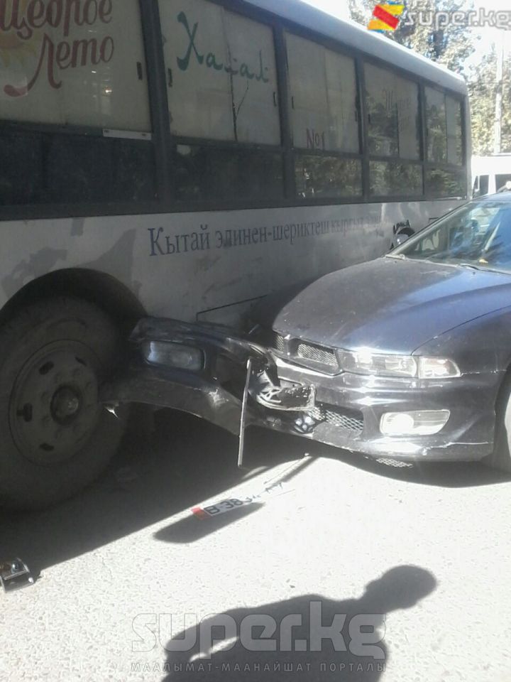 Бишкектеги Жаш Гвардия бульвары менен Чүй кең көчөсүнүн кесилишинде автобус менен жеңил унаа сүзүштү. Бул тууралуу окурман SUPER.KG порталына WhatsApp аркылуу билдирди.