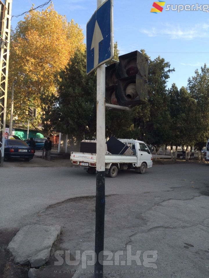 "Ош шаарындагы Тыныстанов жана Салиева көчөлөрүнүн кесилишинде жайгашкан "Кудайберди" унаа тетиктери базарынын алдындагы жол чырактар мышык ыйлагыдай абалда", - деп бүгүн, 7-ноябрда SUPER.KG порталына окурман билдирди.