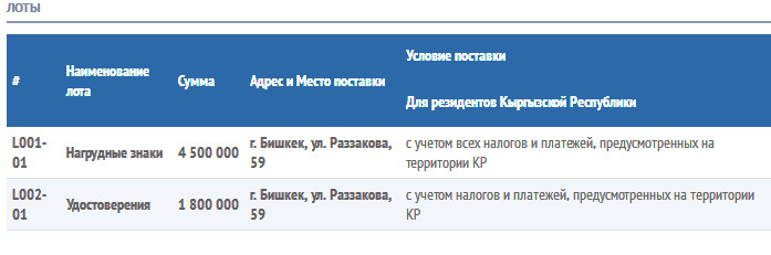 Жергиликтүү кеңештердин жаңы шайланган депутаттарына кызматтык күбөлүк жана алтын жалатылган төш белги жасоого 6,3 миллион сом жумшалат. Бул маалымат мамлекеттик сатып алуулар порталына жайгаштырылды. Депутаттарга 4,5 миллион сомго 9 миң төш белги, 1,8 миллион сомго 9 миң күбөлүк жасатуу пландалууда. Сынакка катышуучулардын документтери 2016-жылдын 12-декабрына чейин кабыл алынат. Жеңүүчү болуп табылган мекеме БШК менен келишим түзүлгөндөн кийин 20 күндүн ичинде товарды даярдап берүүгө милдеттендирилет.