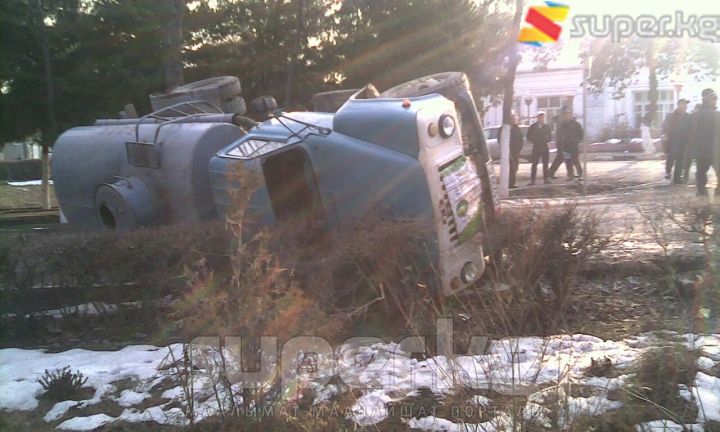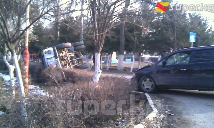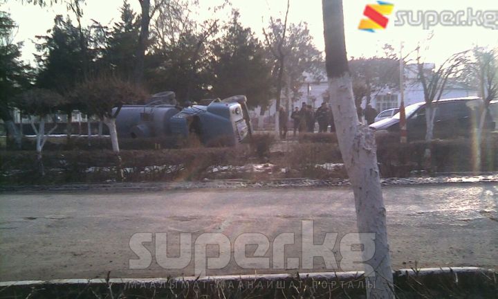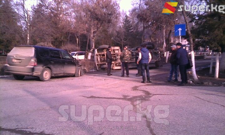 "Жол кырсыгы бүгүн саат 15:45 чамасында катталды. Анда Хонда Одиссей үлгүсүндөгү жеңил унаа менен оор жүк ташуучу унаа сүзүшкөн. Натыйжада экинчи унаа оодарылып кеткен. Кырсыктан жабыркагандар жок", - дейт окурман.