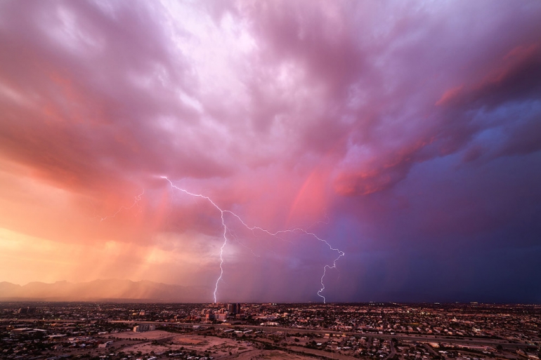 Аризонадагы чагылган. Чагылгандагы электр тогунун Жердеги күчү 10-500 миң амперди түзөт.