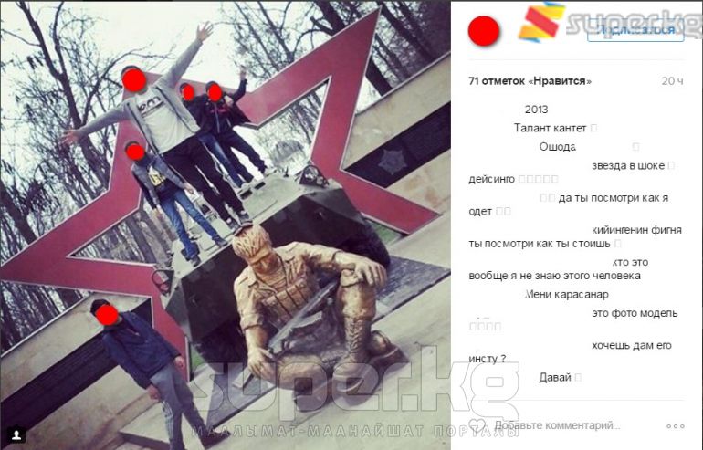 Окурман SUPER.KG порталына WhatsApp аркылуу социалдык тармактардын бирине жүктөлгөн сүрөттү жиберип: "Бул сыяктуу жоруктар көнүмүш адат болуп калганбы? Же биз эстелик-айкелдердин баркын билбейбизби?"- деген суроо салды.