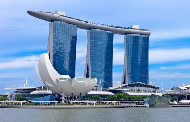 Анын артынан ошол эле Сингапурдагы "Marina Bay Sands" мейманканасы кымбат имараттардын катарын толуктайт. Аны курууга 5,5 миллиард доллар жумшалган. 200 метрлик үч имараттан (55 кабат) турган комплекс. Бири-бири менен гондола кайыгындай терраса менен бириктирилген. Анда 12,4 миң чарчы метрге барабар бассейн жана бакча салынган. Долбоорду Моше Сафди аттуу архитектор иштеп чыккан.
