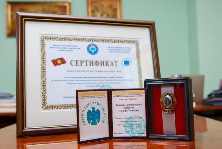 MegaCom компаниясы экономиканын өнүгүүсүнө кошуп жаткан барандуу салымы, бюджет кирешесин калыптандырууга активдүү катышуусу, 2016-жылдагы ишмердүүлүгүнүн жыйынтыгы боюнча салык мыйзамдарын так аткаргандыгы үчүн сыйланды. Өлкөнүн мыкты салык төлөөчүлөрүнүн ишмердиги чынчыл, таза жана сабаттуу ишкердик жүргүзүүнүн үлгүсү боло алгандыгы мактоого татырлык.