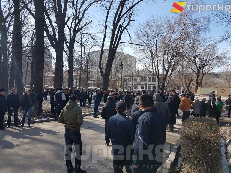 Бүгүн, 24-февралда Бишкектеги УКМКнын имаратынын жанында митинг өтүүдө. Анда 200дөн ашуун адам катышууда. Ага депутаттар Садык Шер-Нияз, Аида Салянова, Наталья Никитенко, Каныбек Иманалиев, Бахадыр Сулейманов, Эмил Токтошев да катышууда. Алар "Алмамбет Шыкмаматовго боштондук, мыйзам баарына бирдей!", "Атамбаев, репрессияны токтот", "КТРК, каралаганыңды токтот" деген жазуулары бар плакаттары менен турушат.