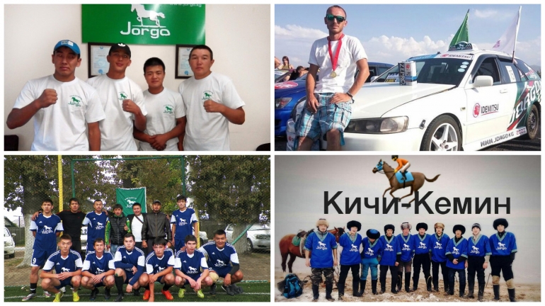 Компания спорт менен активдүү машыккан жаштарга демөөрчүлүк кылат. "Жоргонун" Жогорку лигада ойногон футбол командалары жана Кеминде көк бөрү боюнча командасы бар. Ошондой эле дзюдо, эрежесиз уруш, панкратион спорттору менен машыккан спортчуларга, автожарышчыларга каржылык жактан колдоо көрсөтүп, алар республикалык, эл аралык спорттук иш-чараларда, жарыштарда алдынкы орундарга ээ болуп келишет. Кошумчалай кетсек, жакында бийчи Жан Воиновдун Казакстанда өткөн бий маданиятын өнүктүрүүгө багытталган иш-чарасын өткөрүүгө "Жорго" компаниясы демөөрчүлүк кылган.