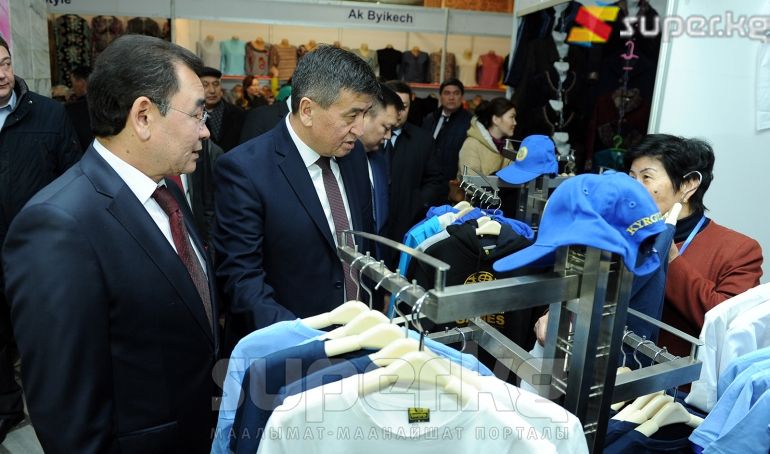 Премьер-министр көргөзмөгө коюлган кездеме жана тигүү тармагындагы түрдүү продукцияларды көрүп чыкты. Анда 50дөн ашык ата мекендик жана 6 чет элдик ишканалардын 300гө жакын ар кандай продукциялары коюлган.
