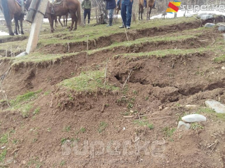 Маалыматка караганда, 6-март күнү Өстүрүү айылынын Шоро жана Допу тилкелеринин жогору жагында жер сүрүлүп жаткандыгы байкалган.