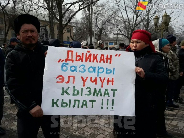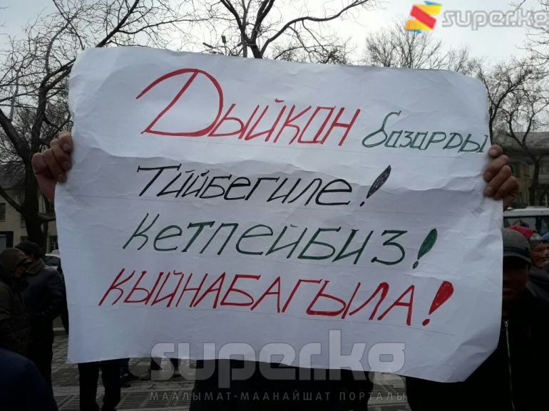 Бүгүн, 13-мартта Ак үйдүн алдына "Дыйкан" базарынын соодагерлери митинг өткөрүшүүдө.